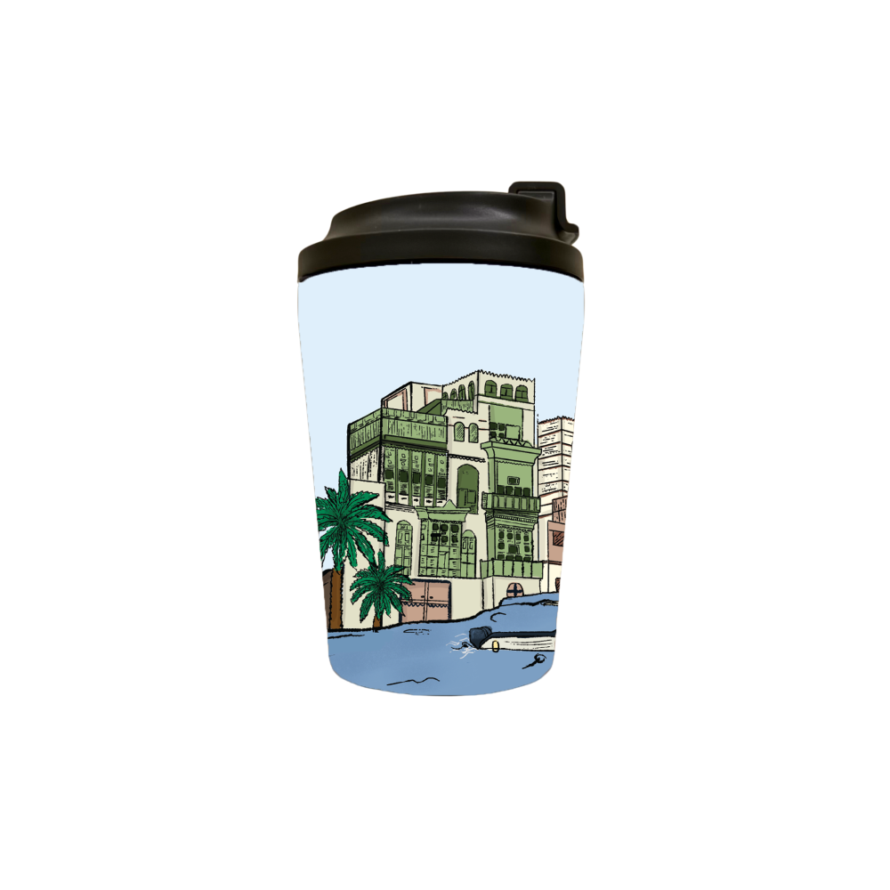 كوب حافظ للحرارة من الفولاذ المقاوم للصدا، بمعيار داخلي وملمس خارجي عازل للحرارة. يوصلك برسمة مدينة جدة وبتغليف أنيق مُناسب للإهداء. حجم الكوب: ٣٦٠ ملطريقة الغسيل: غسيل يدوي فقط