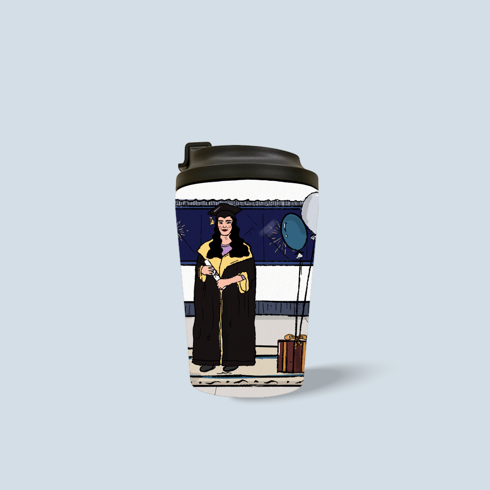 كوب يحتفظ بحرارة قهوتها. . ودفء إنجازها.
